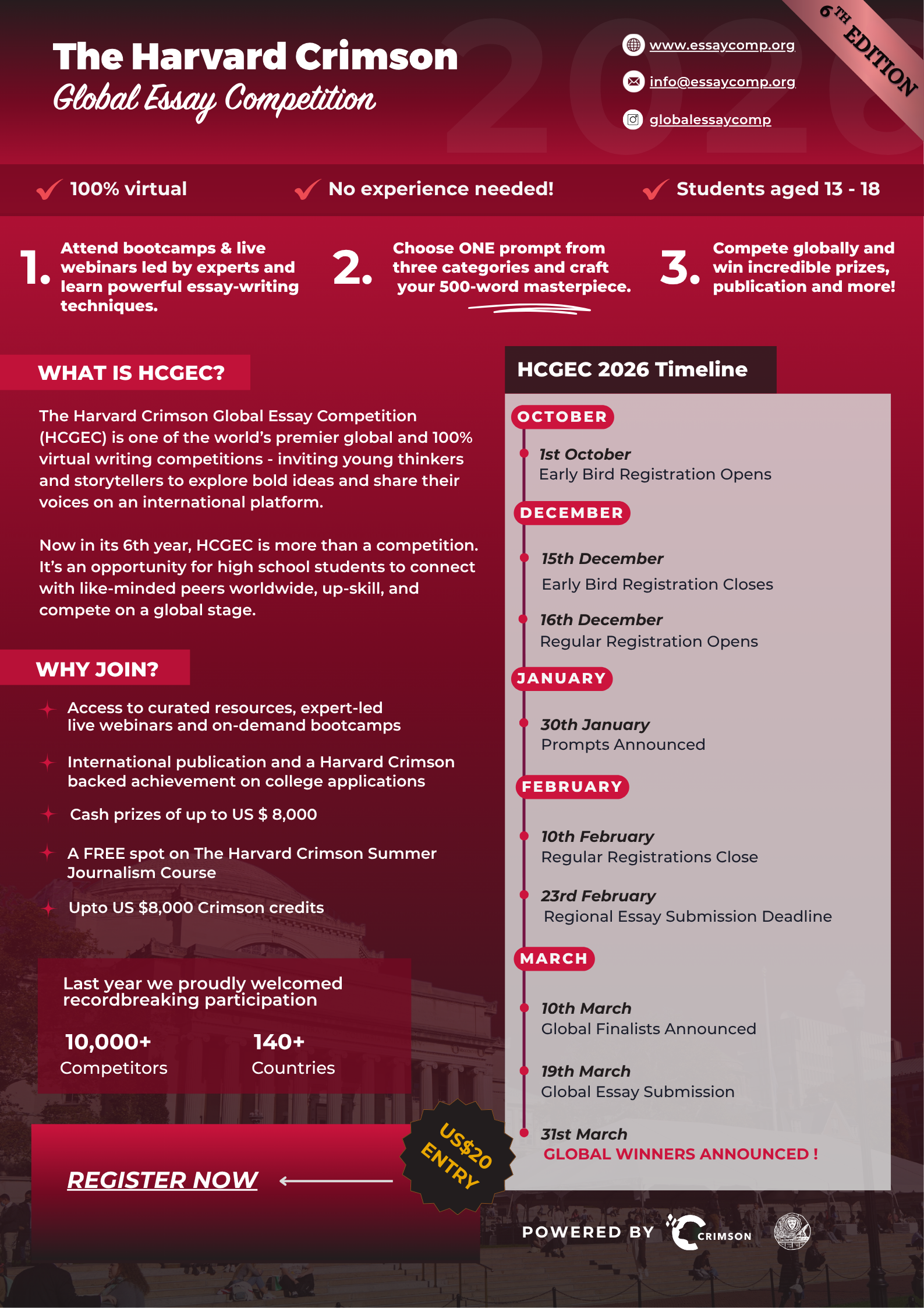 Are you a student who wants to learn to write essays that inspire, compete on the global stage, boost college applications, and gain global recognition? This one’s for you!